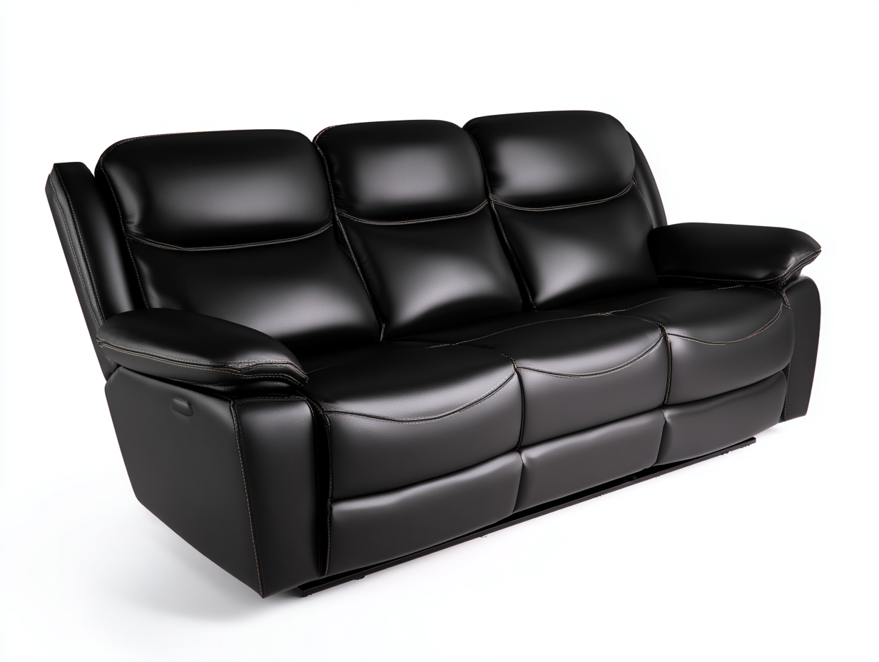 Recliner Sofa Upholstered Leather 215x95x100 cm - Black - Modern Living Room ComfortAUD 146.32