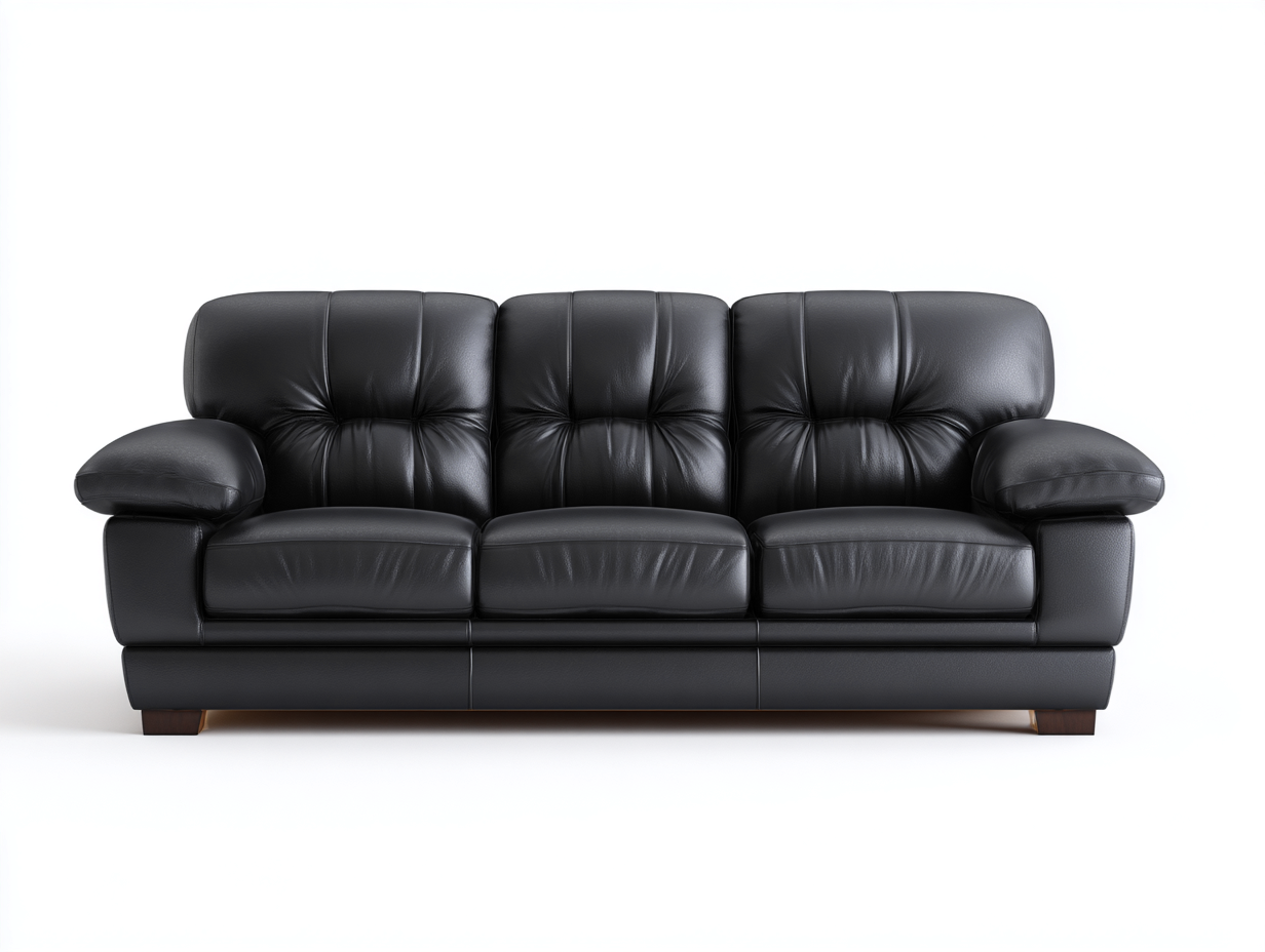 3 Seater Sofa Leather Upholstery 215x90x85 cm - Black - Classic Comfort DesignAUD 146.05