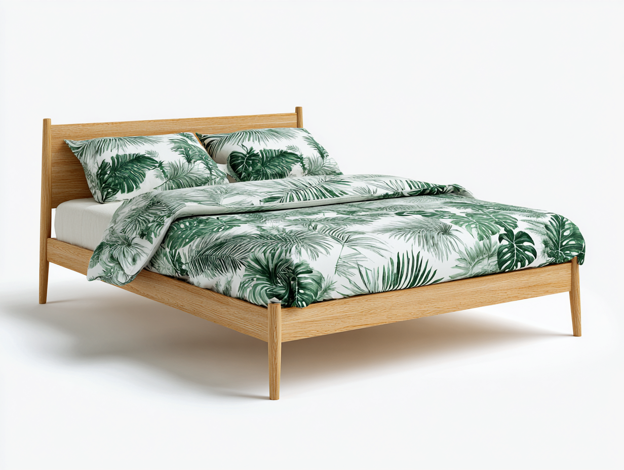 This Double Beds solid wood bed frame is designed for modern bedrooms, offering a stable sleeping base with a clean and timeless appearance. The open structure and raised legs create a light visual effect while fitting seamlessly into everyday home interiors.